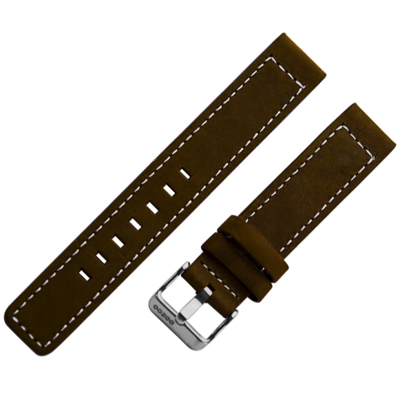 De originele vervangende bruine OOZOO horlogeband voor OOZOO horloges. Deze band is gemaakt van kalfsleer, dat helemaal is doorstikt en een prettig zachte lederen voering heeft. Per breedtemaat kan het bandje uiterlijk licht afwijken van de foto. Aan de band zit een originele roestvrijstalen OOZOO gesp