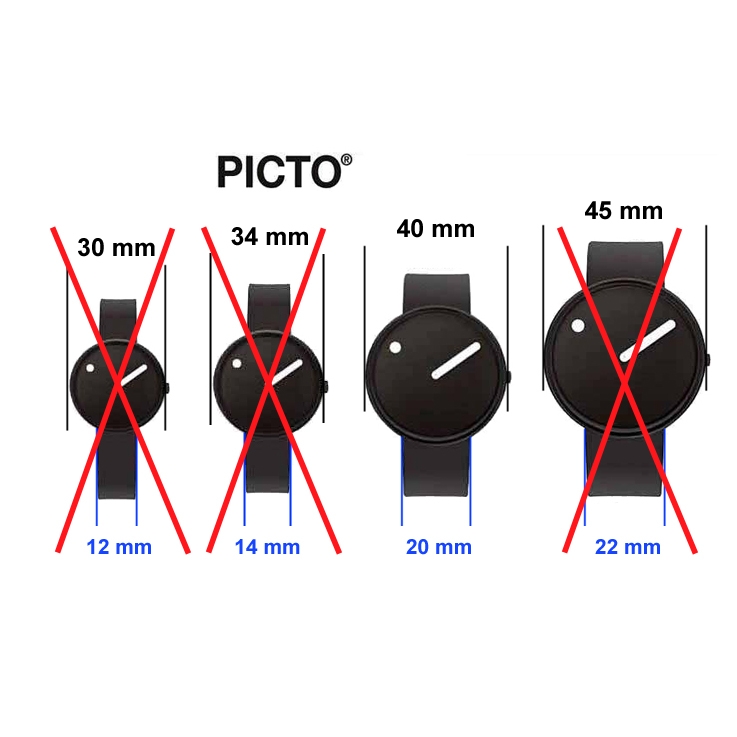 Alle Picto horlogebanden zijn (mits in de juiste maat) onderling uitwisselbaar, u kunt uw horloge dus ook aan een van de andere kleuren lederen, rubberen of stalen Picto horlogebanden dragen.